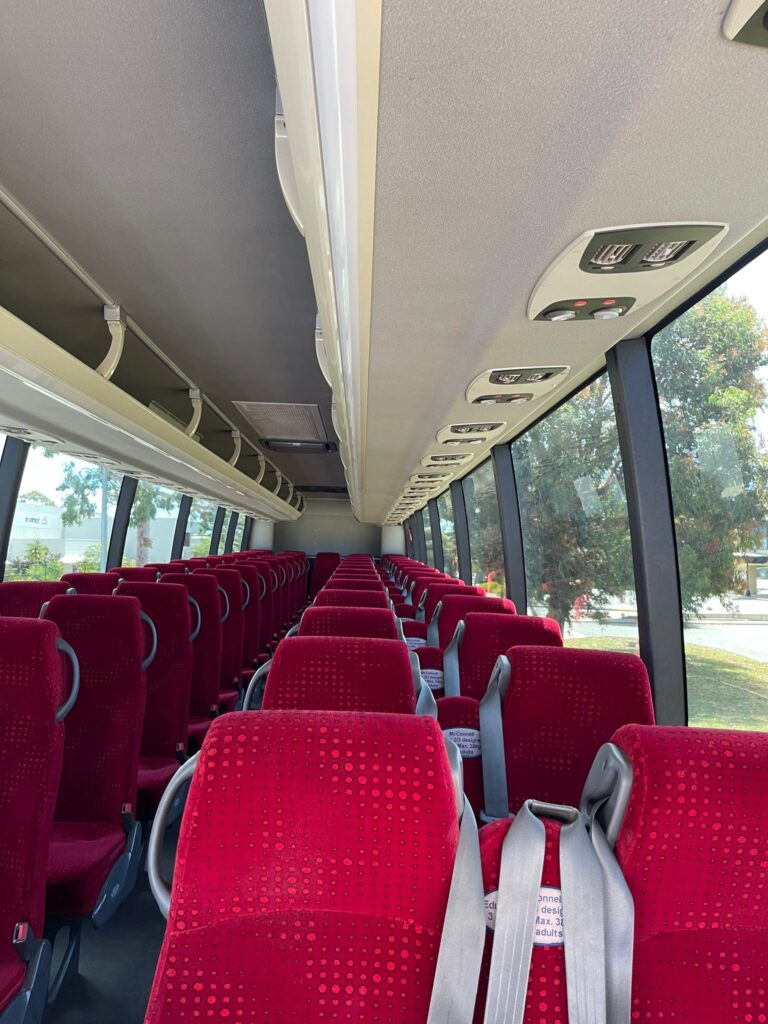 Our coach is fully air conditioned and has high safety standards and features. It is has comfortable fabric seats and is equipped with three point safety belts. Perfect for school excursions and corporate travel!